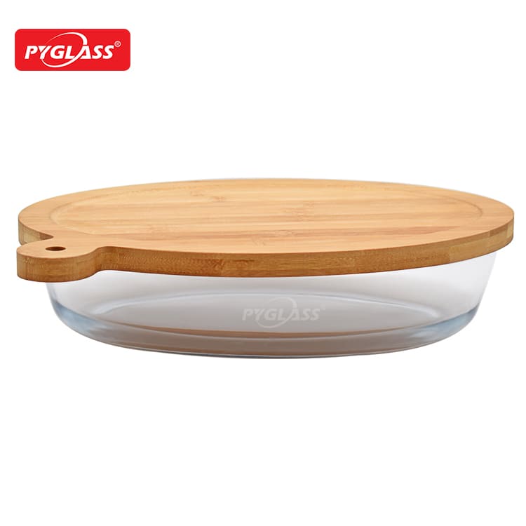China factory professional bakeware microwave oven high borosilicate glass baking dish with Eco-friendly bamboo