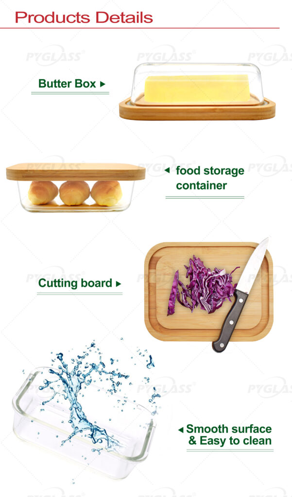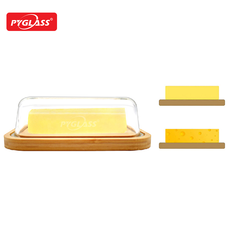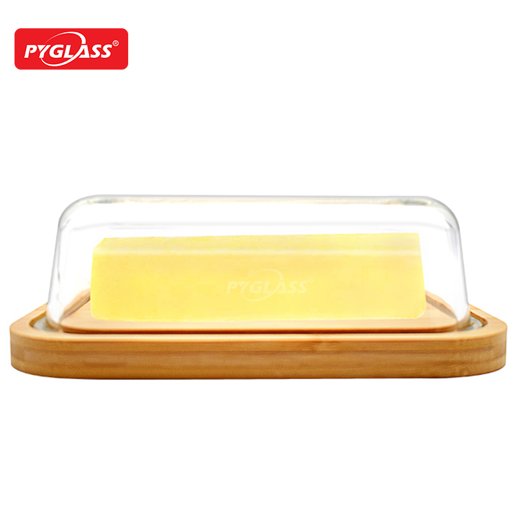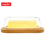 Butter Dish Glass with bamboo Lid for Storing Butter & Cream Cheese