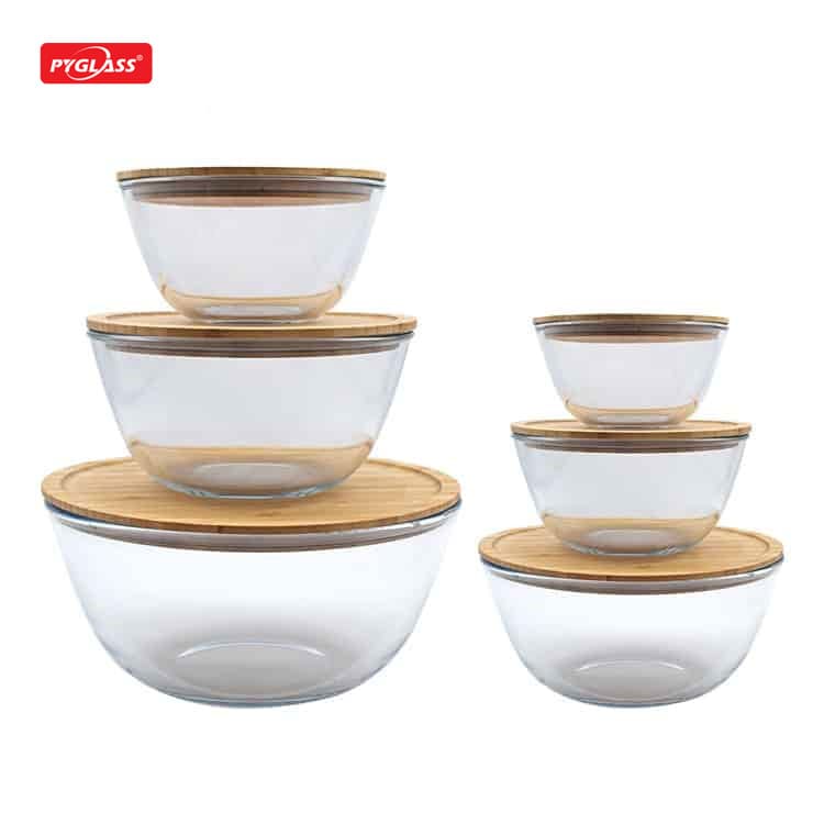 Wholesale household Glass Mixing Fresh Food Containers Round Glass Fruit Salad Nesting Glass Food Storage Containers