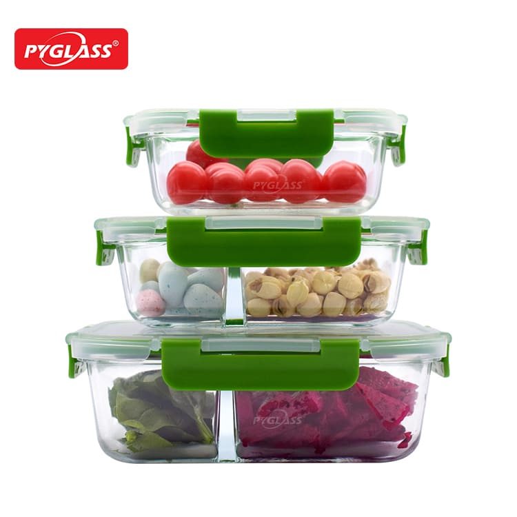 About Divided Glass Container Green Lid - Eco-Friendly, Airtight, Versatile Food Storage