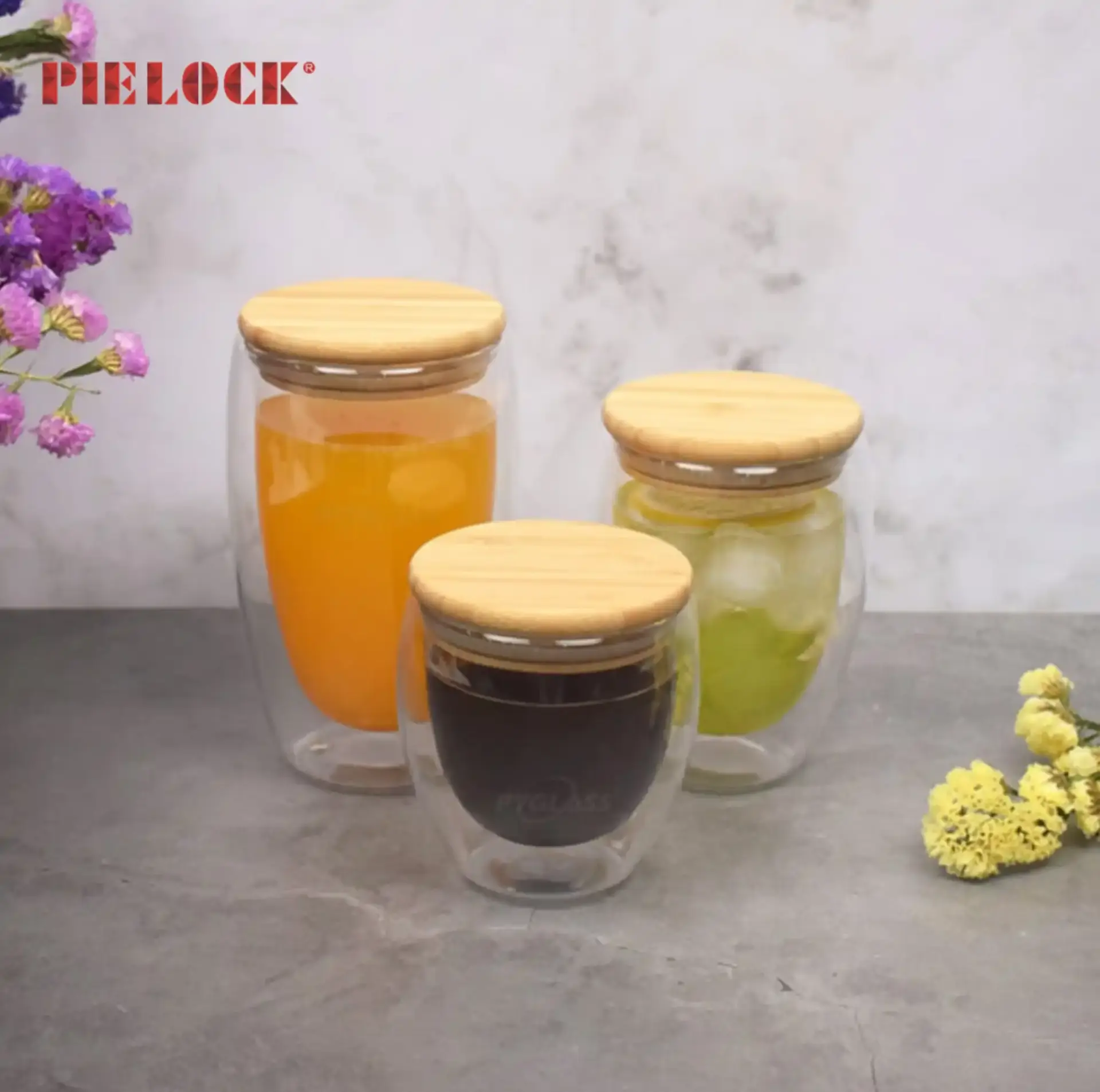 • The clear glass coffee mugs are accompanied by bamboo lids that have an airtight seal. These lids are specially designed with a silicone ring to create suction and fit tightly to prevent accidental spills.