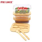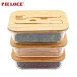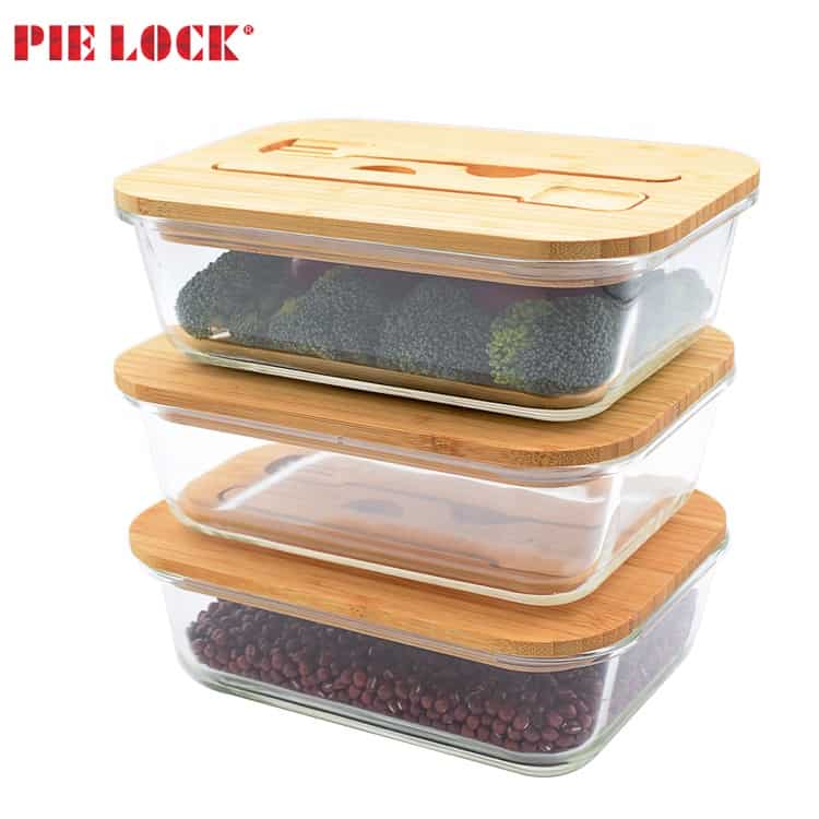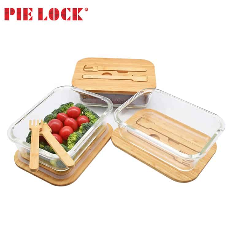 glass food container oven safe freezer storage with bamboo fork spoon lid