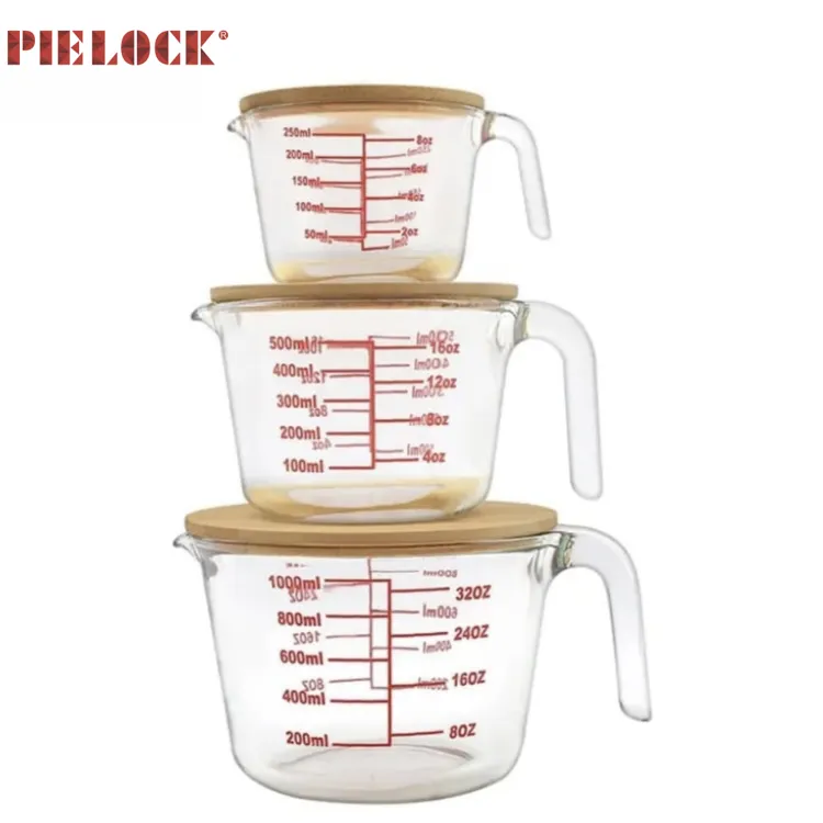 Glass Measuring Cup For Kitchen Juicer With Bamboo Lid